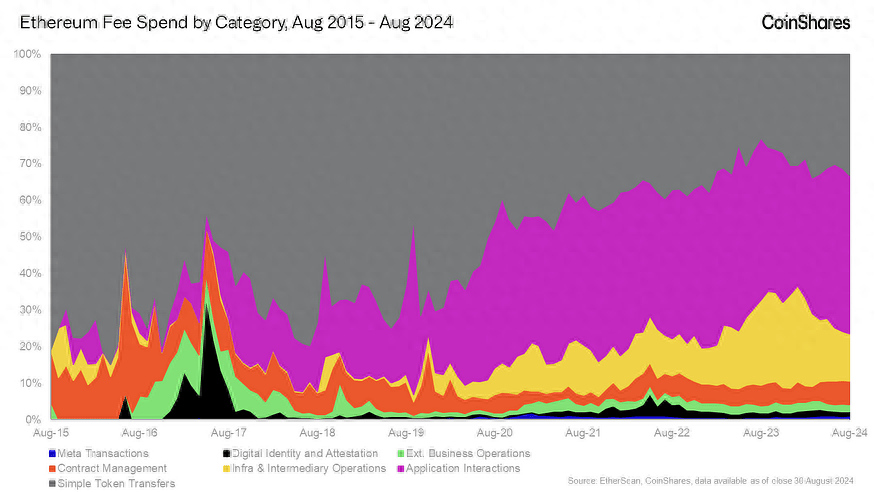 自诞生以来,以太坊的使用发生了重大变化。最初,以太坊主要用作简单资产转移的场所,这是一个仍然很重要的基础用例,但后来被与应用程序和基础设施的更复杂的交互所掩盖。