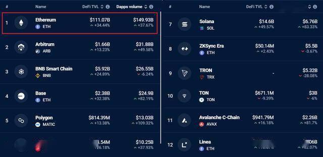 过去 30 天内,没有任何区块链的链上交易量能与以太坊的 1499 亿美元相提并论。第二大竞争对手 BNB Chain 仅达到 266 亿美元,尽管交易费用低得多,但规模却缩小了 82%。更重要的是,以太坊的活动在过去一个月内增长了 37.7%,而 BNB Chain 的交易量下降了 6%。