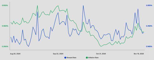尽管以太坊批评者指出,第 2 层汇总解决方案不足以产生费用,但 Solana 也面临着类似的挑战。SOL 质押者和投资者并没有从其 DApp 的成功中获益。根据 StakingRewards 的数据,Solana 的质押回报率为每年 6.2%,而 SOL 的通胀率为 5.2%,这意味着调整后的收益要小得多。